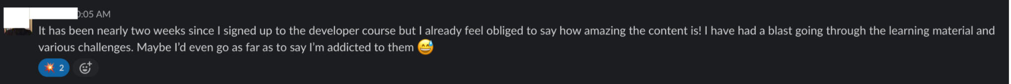 Once you purchase the training, you will get access to an app with private Github Repos where you can begin doing the 30 challenges.A dedicated slack channel gives you the opportunity to ask me questions when you get stuck.There is a massive amount of course material including ReactJS, JavaScript, Webpack, ReduxJS, and challenges to teach you how to approach a new codebase, write excellent PRs and write your first unit test. This is a practical, hands-on experience that will accelerate your growth.