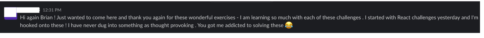 You don't need another course.The best software developers aren't stuck in tutorial hell. They're getting their hands dirty and building software with a purpose.I've created over 15 challenges that mimic what you can expect to experience on the job and 15 challenges on what is expected of you during the interview.With over 20 different repos that cover everything from Javascript Fundamentals to React performance optimizations to data structures and algorithms, you will find material to take you from a junior developer to an advanced JS developer.I guarantee you will be more prepared for your next front-end interview, have a deeper understanding of React and Javascript, and become a better engineer instead of another framework developer.